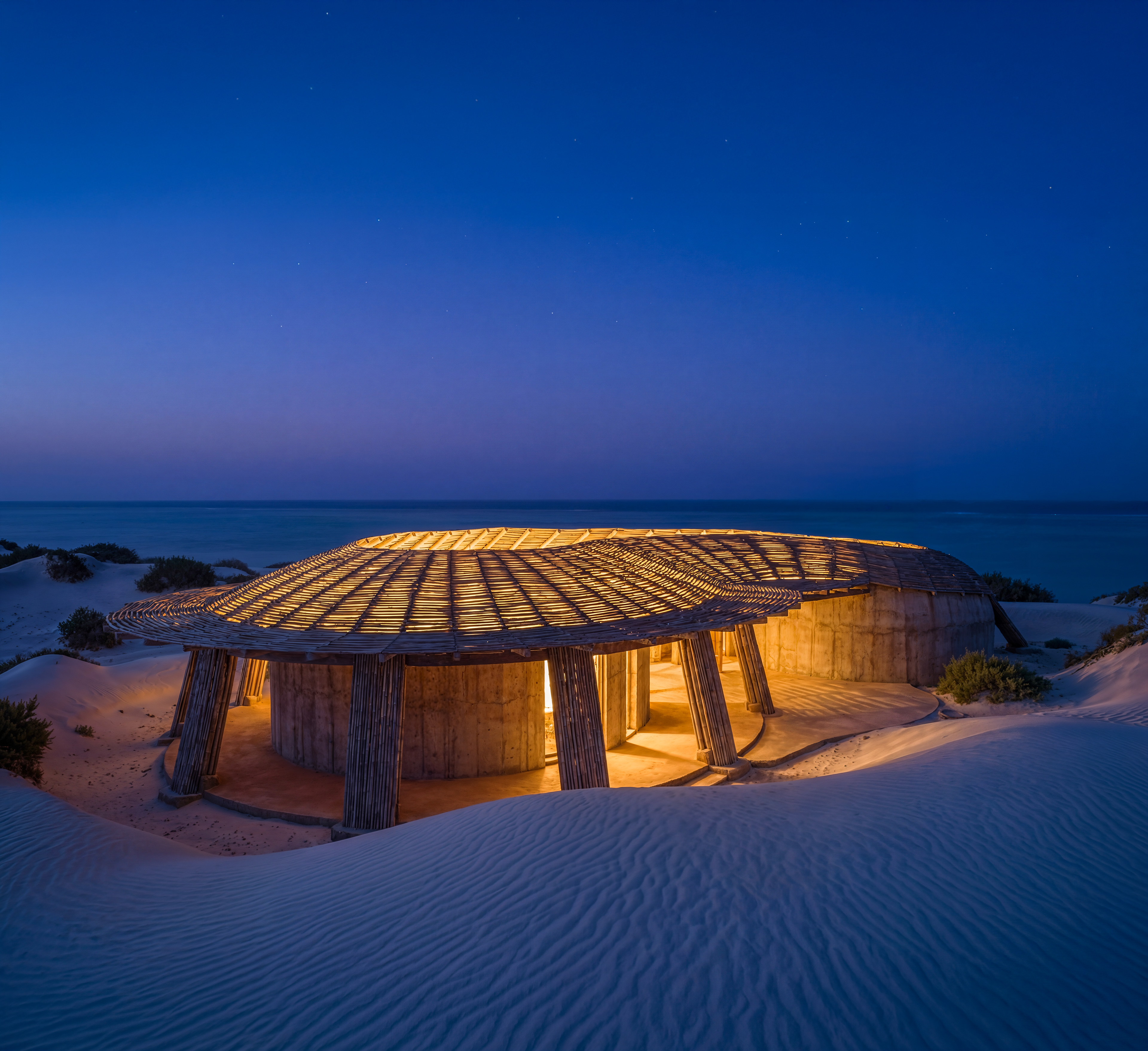 Our proposal envisions a sanctuary where architecture does not dominate the dunes, but emerges from them.